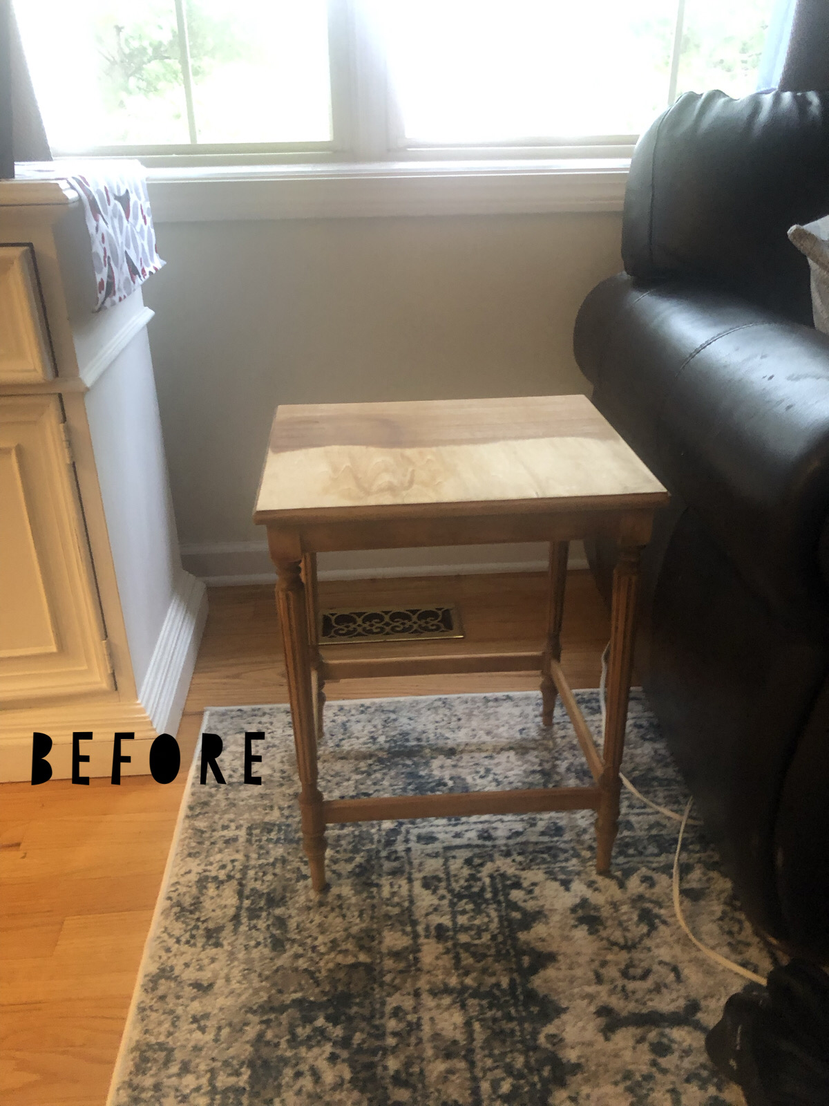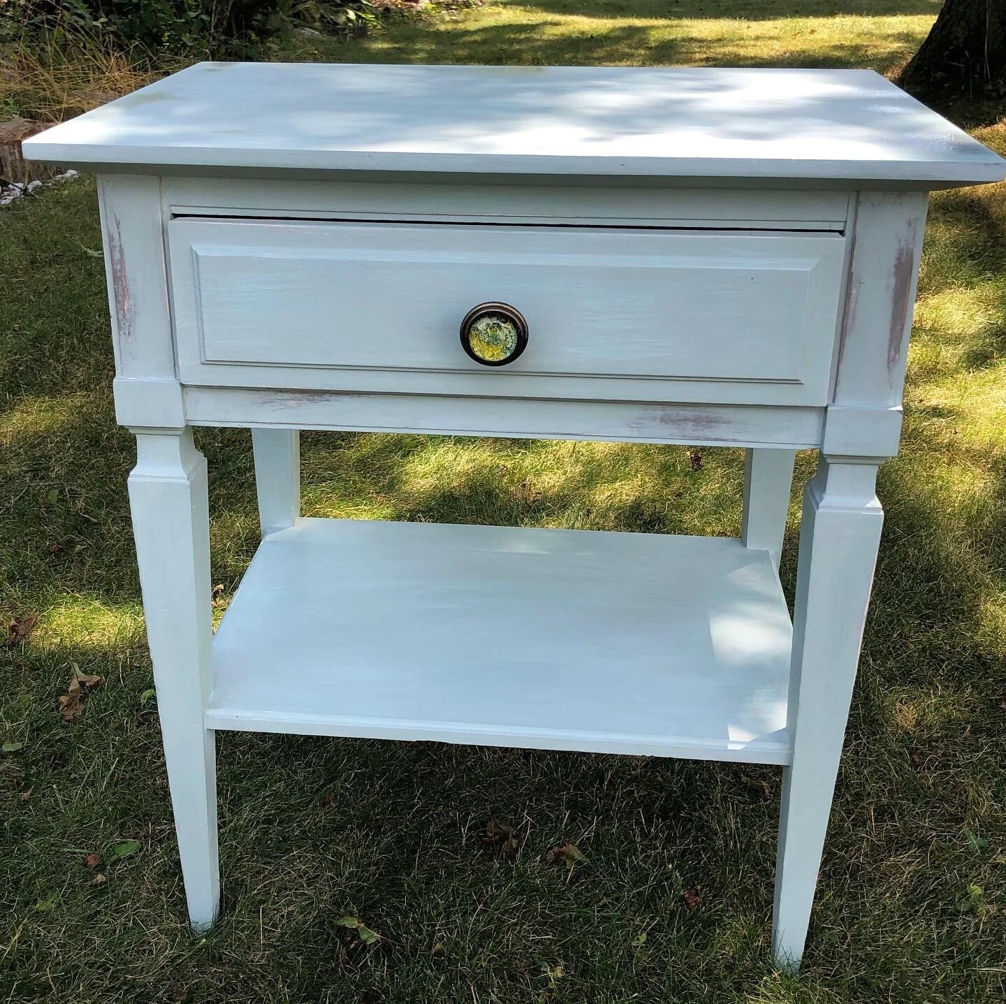 I also re-finish smaller pieces. I can help you find second hand or unfinished pieces and custom finish them for you. This side table was second hand oak. I sanded down the top and finished it with General Finishes Flat Out Flat topcoat for a raw wood look with the protection it needed. I painted the bottom with Jolie Paint - Linen.